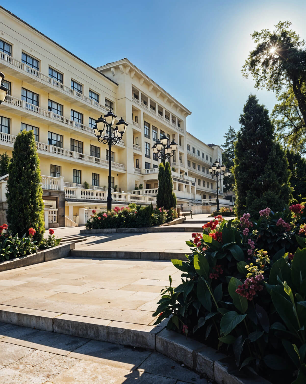 Санаторий занимает пятиэтажное здание, являющееся архитектурной и исторической ценностью города. Номера оформлены в современном минималистичном стиле. В каждой комнате есть удобная мягкая мебель, места для хранения вещей, большой телевизор с плоским экраном, кондиционер и холодильник. Индивидуальный санузел оборудован душевой кабиной. Гостям предоставляются тапочки, халаты, полотенца, косметика и фен. Питание в столовой организовано с учетом индивидуальных диет и заболеваний.